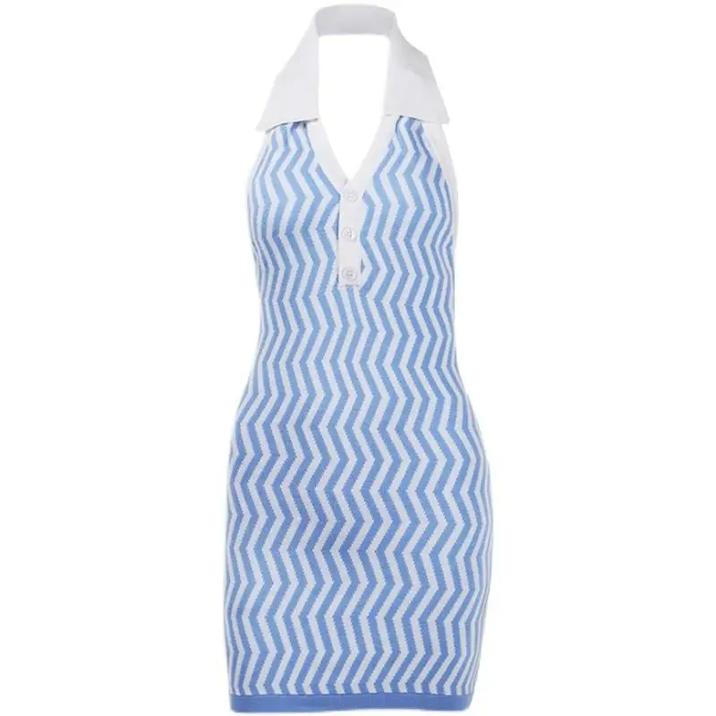 Casual Party Halter Bodycon Sleeveless Backless Polo Button Rib Knitted Sweater Y2k Mini Ladies Wear Dress